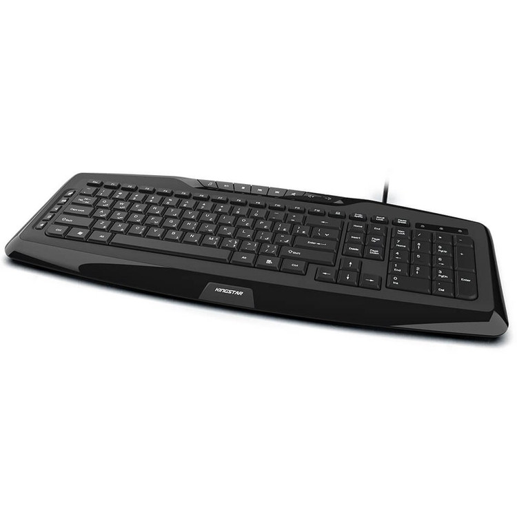 کیبورد کینگ استار مدل kb83 از نوع سیم دار میباشد و از طریق درگاه USB به کامپیوتر متصل میشود. این کیبورد دارای 117 کلید برای انجام فعالیتهای کامپیوتری است. همچنین کیبورد kb83 دارای 13 کلید میانبر به منظور انجام سریعتر کارهاست که عبارتند از Web Home, email, Search, Refresh, Favorite, Music, Play/Pause, Stop, Pre. Track, Next Track, Mute, Volume. کیبورد کینگ استار مدل kb83، برای استفادههای روزمره مناسب است. از دیگر ویژگیهای این کیبورد محصول کمپانی کینگ استار، طراحی کلیدها به گونهای که امکان تایپ کردن در مدت زمانی طولانی را فراهم می کند، دسترسی راحت به تمامی کلید های کاربردی، طراحی نرم و سایلنت کلید ها، با دوام و دارای کلید های مات میباشد.
