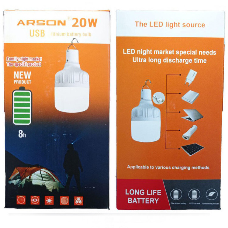 لامپ آویز آرسون مدل L375 ، یک لامپ قابل حمل و سبک مناسب برای مواقع اضطراری است. این لامپ آرسون 5 حالت مختلف روشنایی دارد که شامل حالت ثابت، چشمک زن (در دو حالت پرنور و کم نور)، اضطراری (کمپینگ) و رقص نور بوده و با وجود توان بالای خروجی، کم مصرف می باشد. در قسمت انتهایی لامپ درگاه Micro USB و کلیدPower یا همان کلید روشن و خاموش لامپ قرار دارد. در قسمت بالای لامپ، یک قلاب قرار دارد تا به آسانی به مکان مورد نظر نصب شود و همچنین با روشن بودن مداوم اصلا گرم نمی شود و در زمان قطعی برق، می توان از آن استفاده کرد. در مواقع نیاز می توان این چراغ را به راحتی از طریق پاوربانک و یا شارژر دیواری و حتی می توان آن را از طریق شارژر فندکی ماشین نیز شارژ کرد . لامپ Arson از یک باتری لیتیومی استفاده می کند و می توان پس از هر بار خالی شدن باتری آن، با استفاده از یک کابل microUSB که درون پک لامپ قرار داده شده است، آن را شارژ کرد.