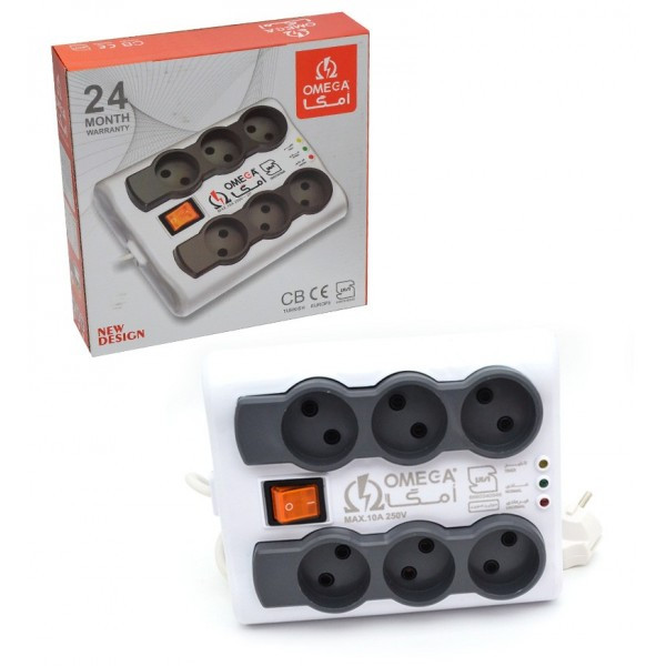 محافظ برق 6 خانه OMEGA مدل P6000 از نوع کلید دار است. طول کابل این محافظ برق کلید دار 1.5 متر است که دارای حداکثر توان خروجی 10 آمپر می باشد. این محافظ برق در برابر ولتاژهای غیر استاندارد و مضر مانع از سوختن لوازم در مقابل شوک های احتمالی برق شهر می شود همچنین مناسب برای کامپیوتر و سایر لوازم صوتی-تصویری می باشد. این محافظ برق به نشانگر LED مجهز شده و شما را از وضعیت پایداری برق مصرفی مطلع می کند. این محافظ برق در برابر تغییرات شدت جریان مقاوم است.از ویژگی های این محافظ برق دارا بودن نشان استاندارد بر روی بدنه، زمان تاخیر 30 ثانیه و همچنین حداکثر جریان انتقالی ۱۰آمپر می باشد.