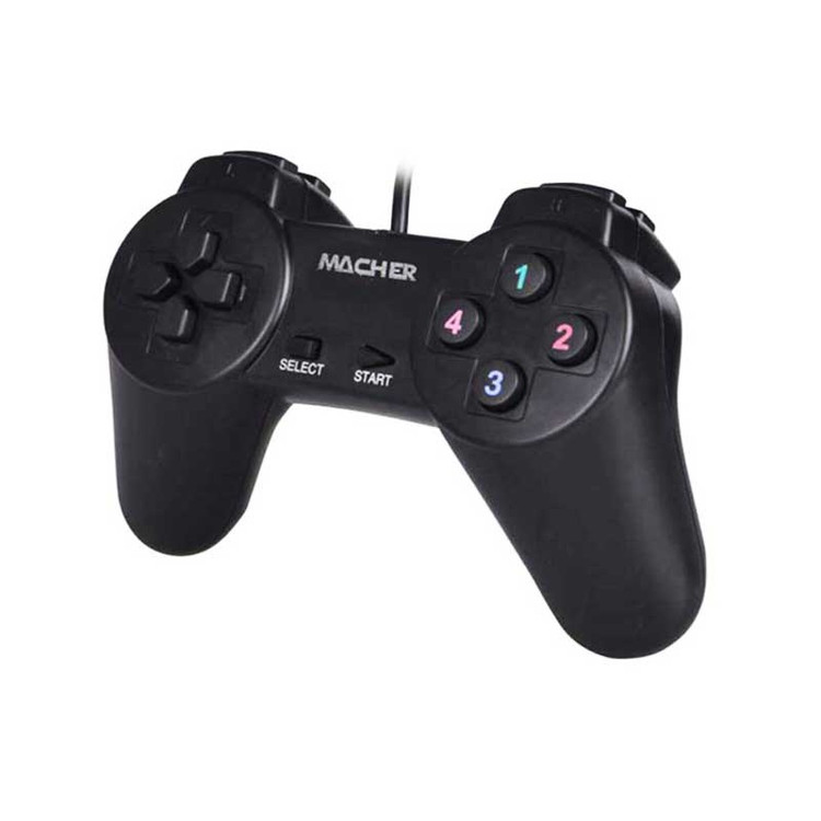 دسته بازی مچر مدل MR-55 یک دسته بازی باسیم با کابل USB با طراحی ارگونومیک و بدون نصب و با اتصال آسان برای انواع کامپیوتر و لپ تاپ طراحی شده است. دسته بازی MR-55 دارای چهارکلید تغییر جهت، چهارکلید با اعداد 1/2/3/4 می باشد. این گیم پد دارای دکمه های تغییر جهت، دکمه های select وstart به عنوان کلیدهای کاربردی در حین بازی مورد استفاده قرار میگیرد. این دسته بازی باتمامی سیستم عامل ها سازگار می باشد.