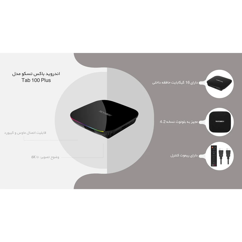 اندروید باکس تسکو مدل Tab 100 Plus – تبدیل تلویزیون عادی به هوشمند با قابلیت 6K و اشتراک 3 ماهه فیلیمو