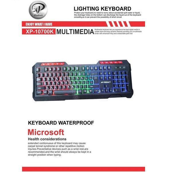 کیبورد باسیم XP مدل 10700K از طریق پورت USB به سیستم وصل می شود. این کیبورد دارای 114 کلید مجزا می باشد. این کیبورد دارای کلیدهای حک شده با حروف فارسی می باشد که تجربه تایپ راحت و سریع را برای کاربران فراهم می سازد. پایه هایی که در زیر کیبورد قرار دارد طوری طراحی شده که ارتفاع کیبورد را تنظیم می کند و حالتی مناسب برای کاربر فراهم می سازد.