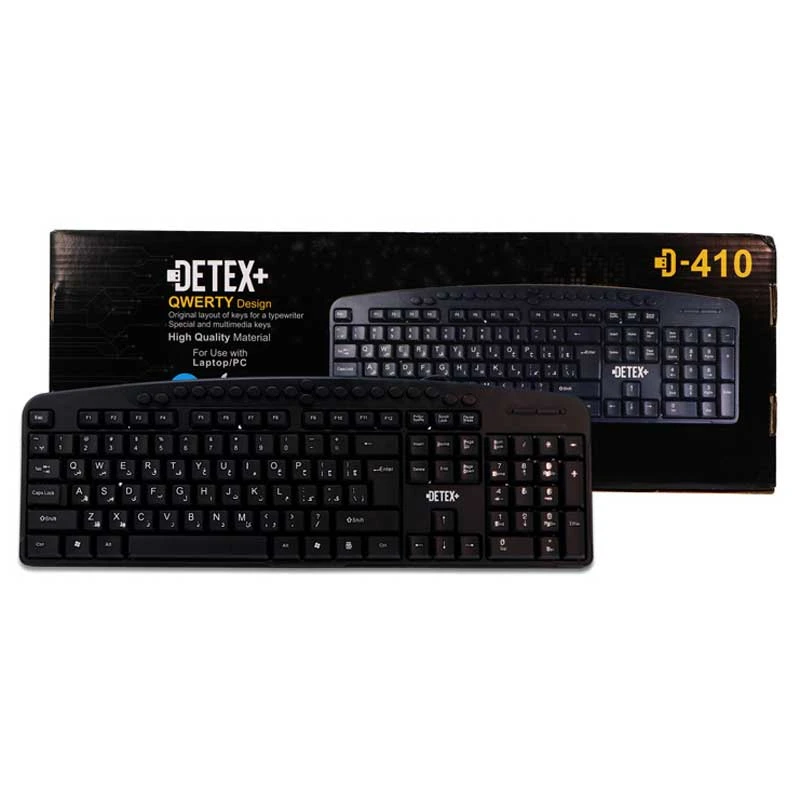 اگر به دنبال یک کیبورد باسیم با حروف فارسی برای استفاده روزمره، محیطهای اداری یا آموزشی هستید، مدل D-410 از برند Detex Plus میتواند انتخابی مقرونبهصرفه و مطمئن باشد. این کیبورد با طراحی استاندارد و وزن سبک 300 گرمی، برای تایپ طولانی و کارهای روزمره بسیار مناسب است.