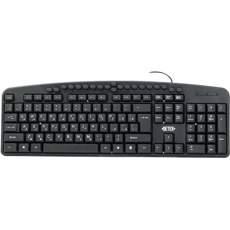 کیبورد با سیم دیتکس مناسب برای مصارف خانگی ، گیم و اداری می باشد .این کیبورد با کابل USB به کامپیوتر و نوت بوک متصل می شود. کلیدهای این کیبورد برجسته و مناسب تایپ متون میباشد .